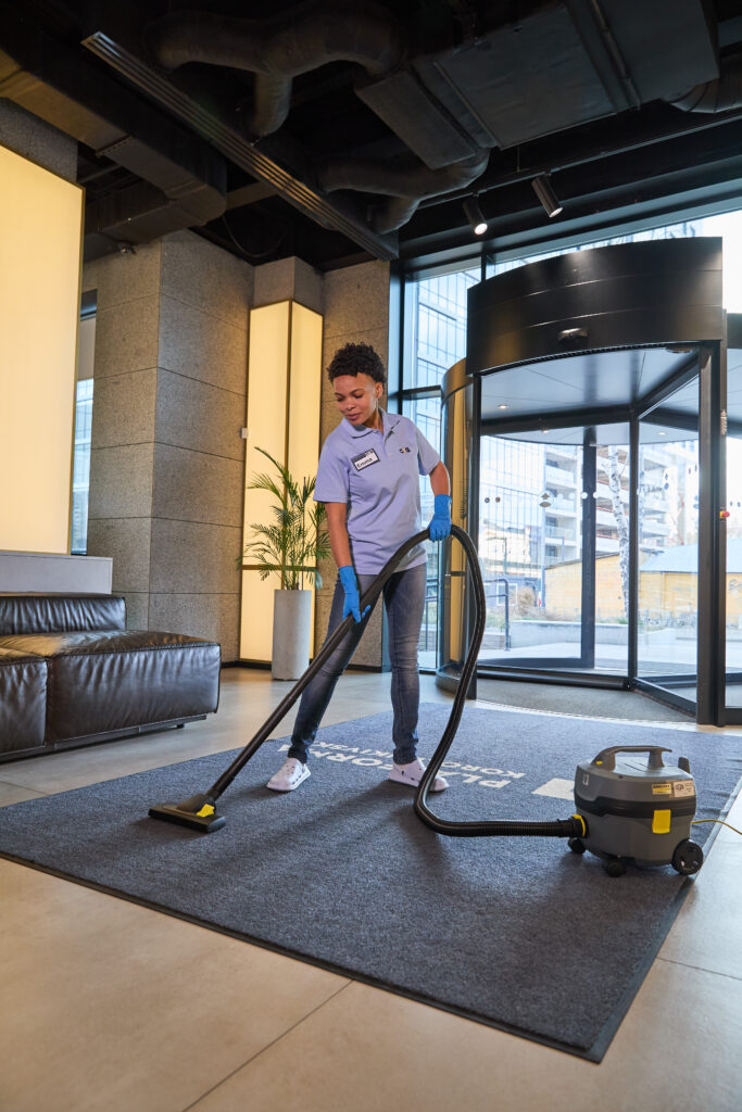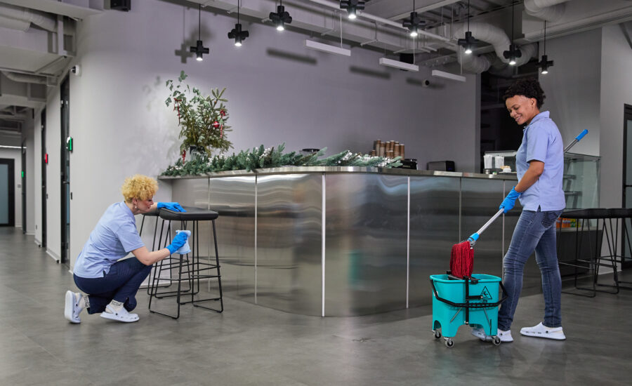 Deep cleaning goes far beyond the surface. It involves more intensive and less frequent tasks, such as shampooing carpets, washing windows inside and out, scrubbing grout, polishing hard floors, cleaning behind furniture, disinfecting air vents, and removing accumulated dust from high and hard-to-reach areas. Deep cleaning is essential for cleaning and disinfecting bacteria, allergens, and long-term stains that aren’t addressed during regular cleaning. Most offices schedule deep cleaning monthly, quarterly, or bi-annually depending on number of visitors and industry standards.